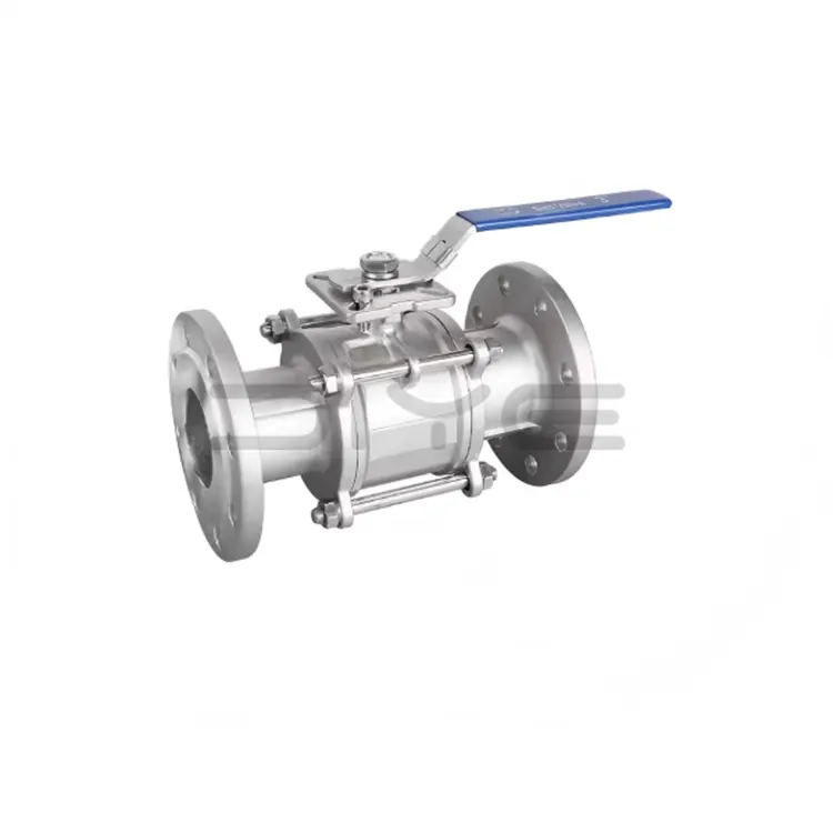 Der 3PC-Flanschkugelhahn verfügt über ein dreiteiliges geteiltes Design. Der Ventilkörper besteht aus einem zentralen Hauptkörper und Endkappen mit linkem und rechtem Flansch. Er besteht aus Edelstahl 304/316/316L durch Schmieden und Präzisionsbearbeitung und verfügt über eine ausgezeichnete Korrosionsbeständigkeit, hohe Druckbeständigkeit und hohe Temperaturbeständigkeit.